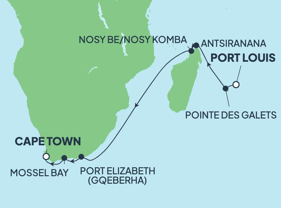Prepárate para un extraordinario viaje por África a bordo del Norwegian Sun. Mientras estés en Mauricio, visita el famoso Caudan Waterfront para conocer las exclusivas tiendas, los restaurantes y la famosa pagoda china. Visita Pointe des Galets, donde te encontrarás con exuberantes bosques tropicales, playas y asombrosos arrecifes de coral. En Antsiranana, prueba el kitesurf o el surf tradicional, haz una caminata por la Montagne des Français Reserve para disfrutar de vistas fantásticas o explora lo mejor de la ciudad en un tour guiado. Descubre una nueva cosecha favorita en Ciudad del Cabo durante un tour con cata de vino y saborea la cocina local con un picnic gourmet en una pintoresca bodega. Son unas vacaciones únicas que recordarás por el resto de tu vida.