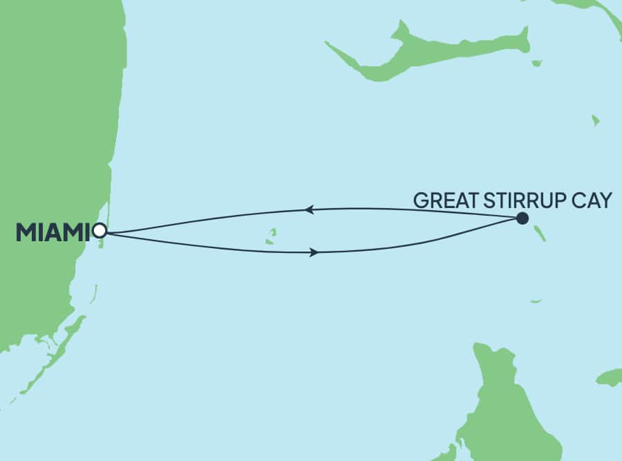 Miami es mágica durante todo el año, así que dedica un tiempo antes o después del crucero para broncearte en South Beach, visitar el espléndido Museo y los Jardines Vizcaya y hacer compras en Bayside.  Con una increíble combinación de culturas y escenarios urbanos, como el moderno distrito de art deco de South Beach o el hermoso Coconut Grove. Relájate en nuestra isla privada, Great Stirrup Cay, con un chapuzón en nuestra laguna exclusiva Silver Cove y un masaje en Mandara Spa. Sumérgete en un paraíso acuático mientras practicas buceo de superficie entre nuestro jardín de esculturas submarinas y luego descansa en la extensa playa con tu bebida favorita en la mano. Siéntete libre de hacer todo, o nada, en tu isla privada paradisíaca.