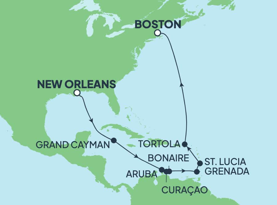 Nada puede empañar el buen ánimo donde reina la diversión, el jazz te seduce y la comida te cautiva. Únete a la acción en el famoso Vieux Carre, mejor conocido como el Barrio Francés, y disfruta del ritmo del Dixieland y de toda la diversión de Bourbon Street. Pasea por el encantador Garden District o simplemente camina a orillas del Misisipi. ¿Buscas un crucero desde Nueva Orleans? Mira nuestra selección de cruceros por el Caribe.
