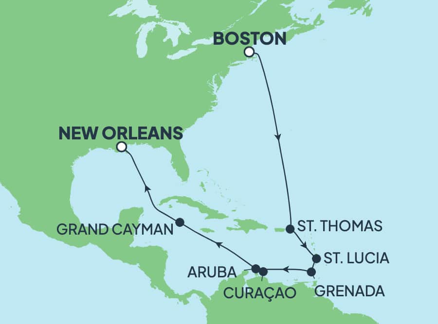 Nada puede empañar el buen ánimo donde reina la diversión, el jazz te seduce y la comida te cautiva. Únete a la acción en el famoso Vieux Carre, mejor conocido como el Barrio Francés, y disfruta del ritmo del Dixieland y de toda la diversión de Bourbon Street. Pasea por el encantador Garden District o simplemente camina a orillas del Misisipi. ¿Buscas un crucero desde Nueva Orleans? Mira nuestra selección de cruceros por el Caribe.